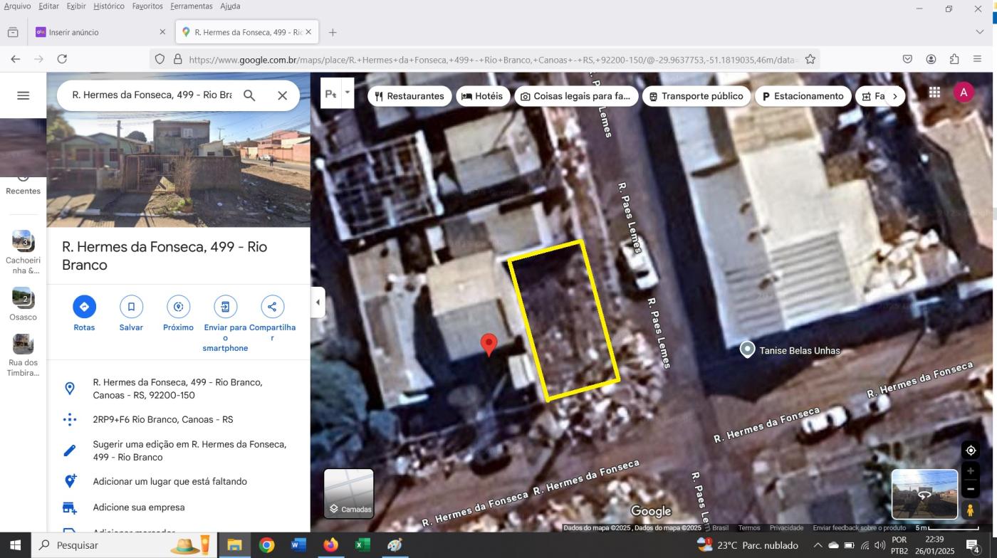 Duas lojas em alvenaria com 4,00m de frente por 12,00m de frente a fundos, totalizando 96,00m2 de área construída as duas.